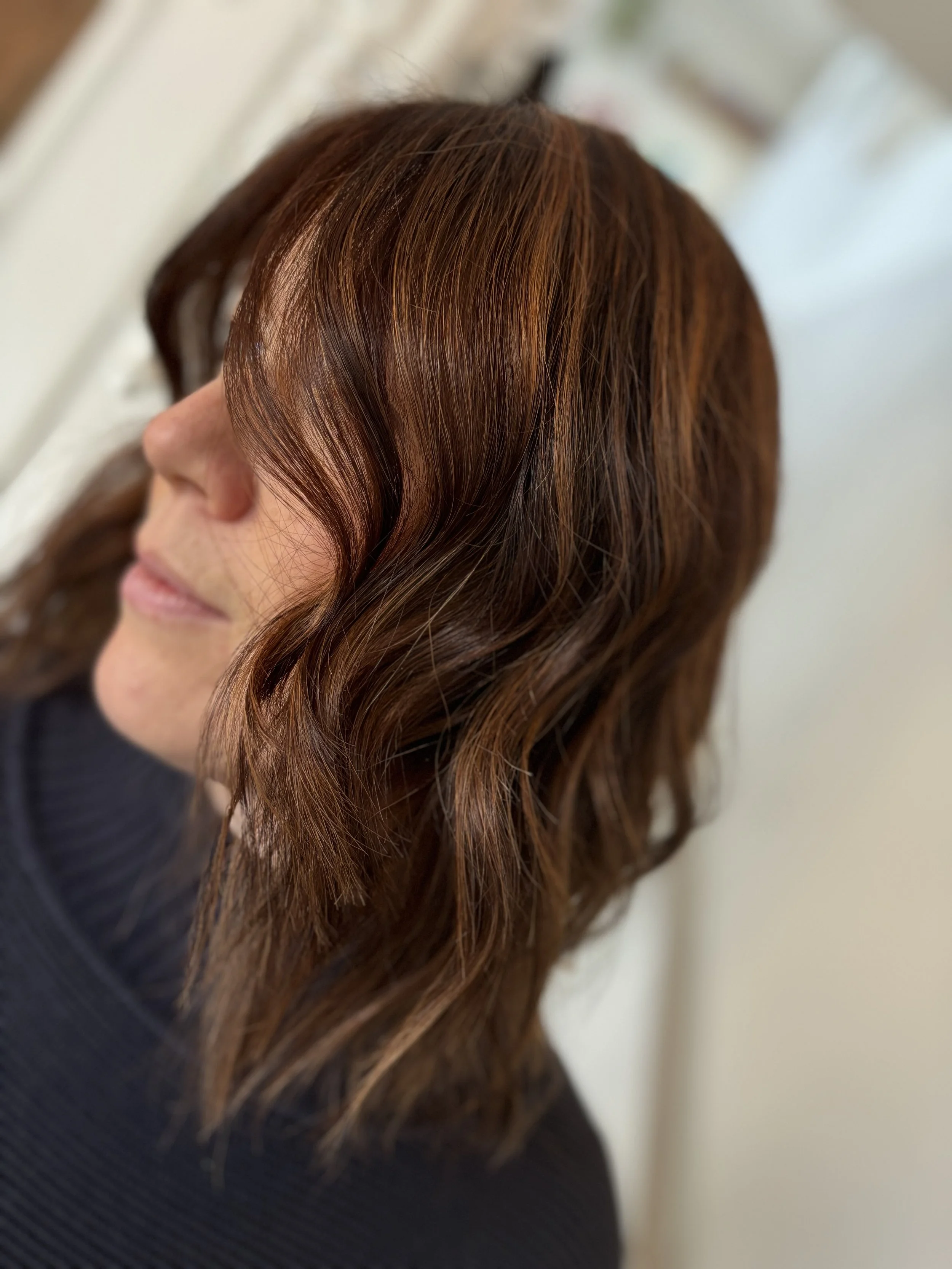 Brunettes & Red heads don’t have to be boring—this service is perfect for those who want more than a flat, all-over colour but don’t need the high contrast of a lived-in look. Whether you're after soft, subtle dimension or more defined tones throughout, creating rich, warm depth with multi-tonal shades that bring your hair to life. Perfect for enhancing natural tones or adding a fresh twist to your colour.