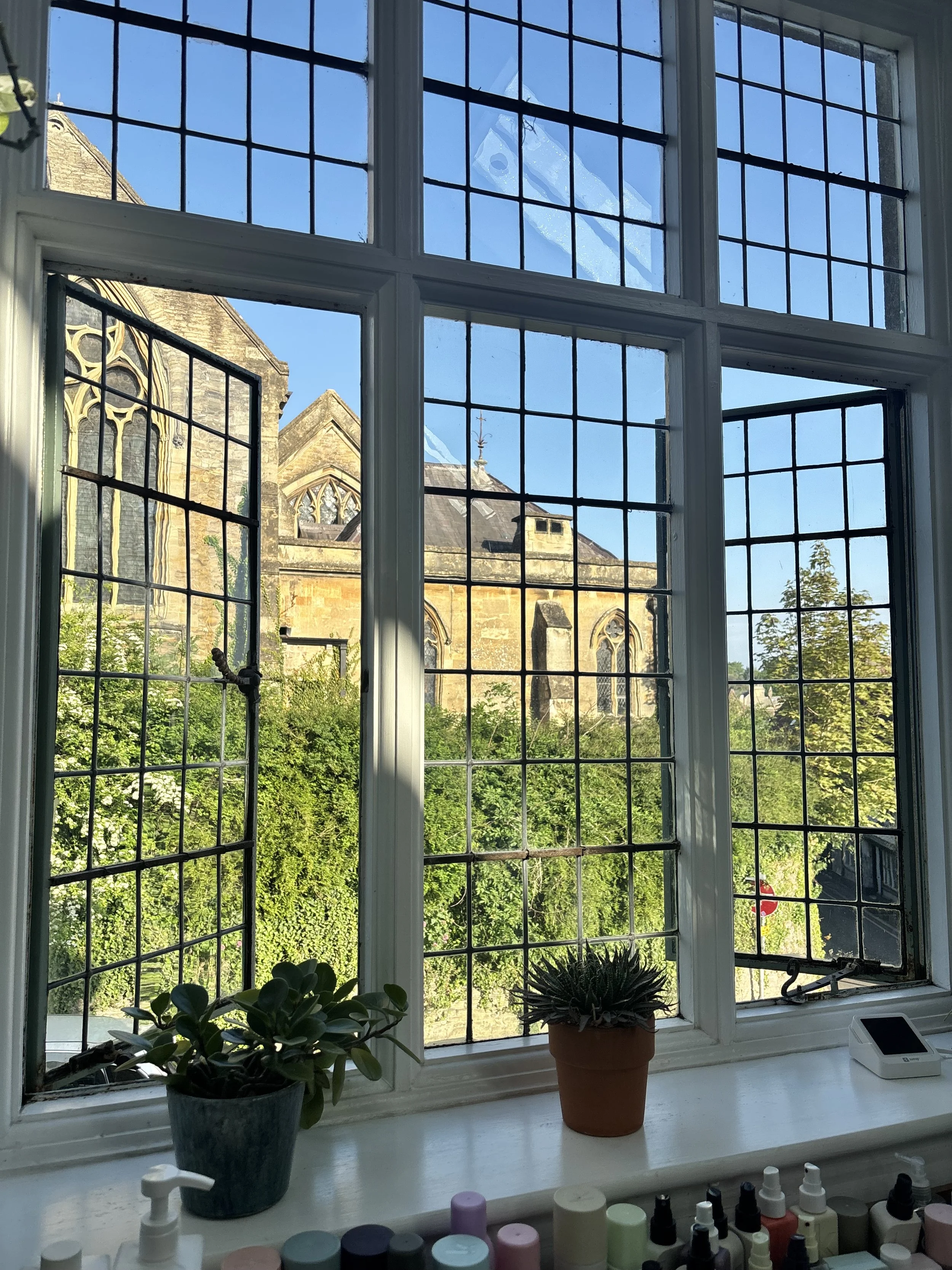 I am based at The Studio β a light-filled, peaceful, and airy loft-style space nestled in the heart of the vibrant artisan town of Frome. With its calming atmosphere, exposed wooden beams, and an abundance of lush green plants, The Studio offers a serene and inspiring environment for creativity and connection. Designed to feel both welcoming and grounded, itβs a space where natural beauty and thoughtful details come together, making it the perfect setting for creating, and for clients to unwind.